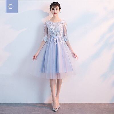 ドレス ウェディングドレス ショート丈 パーティードレス 披露宴 結婚式XSXXL韓国風花嫁 ミニ丈 着痩せ二次会発表会演奏会 レースお呼ばれ エレガント グレー