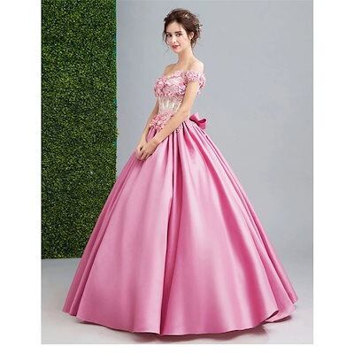 ウェディングドレス花嫁 お呼ばれドレス大きいサイズパーティードレス結婚式司会者演奏会用ロングドレス 花柄編み上げドレスライン オフショルダードレス綺麗