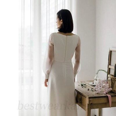 リゾートドレス ウエディングドレス 二次会 花嫁 前撮り パーティードレス ロングドレス 結婚式 大人可愛い エレガント白 エンパイア シンプル 新婦