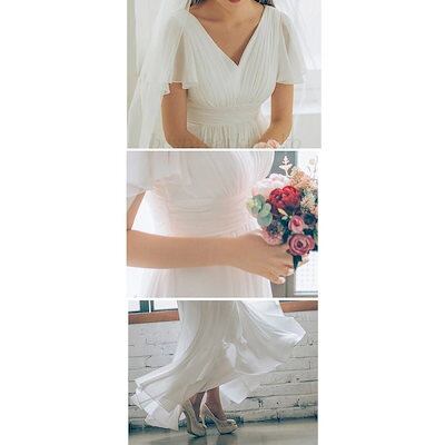 マキシワンピース ウエディングドレスシフォン 韓国風 オシャレ ゆったり 通勤 大人 上品 着痩せ 可愛い エレガント Aライン 白 ロング丈 旅行 海デートVネック