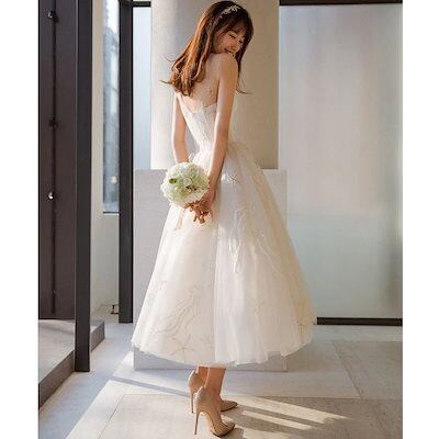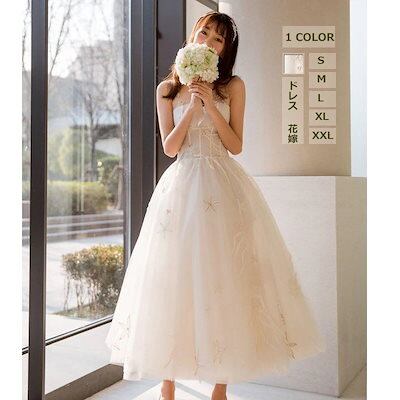 白ウェディングドレス 大きいサイズレディース ミモレ丈 可愛いノースリーブ パーティードレス お呼ばれドレス 姫系 成人式忘年会花嫁披露宴二次会結婚式
