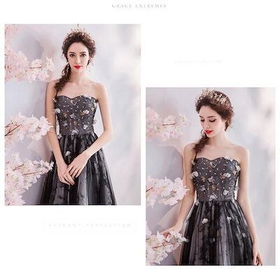 ドレス ロングドレスウェディングドレスパーティードレス花嫁レディース結婚式花飾り二次会披露宴お呼ばれドレス舞台衣装キレイめ花嫁の介添えドレス ブラック