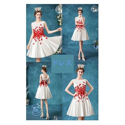 パーティードレス イブニングドレス ウェディングドレス レディース 膝丈ワンピース ノースリーブ 刺繍 花柄 結婚式 司会者 飲み会 演奏会 大人 上品 きれいめ