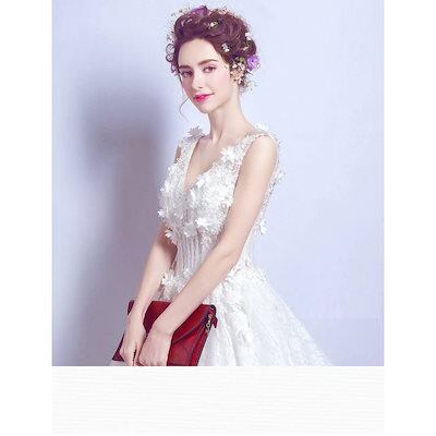マキシ丈 エンパイアドレス ウェディングドレス パーテイードレス 編み上げ ステージ衣装 ブライダル イブニングドレス 大きいサイズ