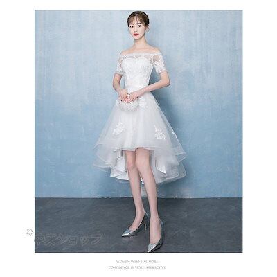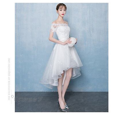 ウェディングドレス パーティードレス イブニングドレス Aライン 花嫁ドレス フレアワンピース 膝丈ワンピース プリンセス エレガント 結婚式 発表会 司会者