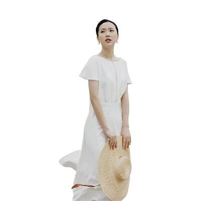 ウエディングドレス Aライン二次会 花嫁 白 ワンピースミモレ丈 パーティドレス海外挙式 披露宴 コンサート 前撮り後撮り ビーチフォ撮影
