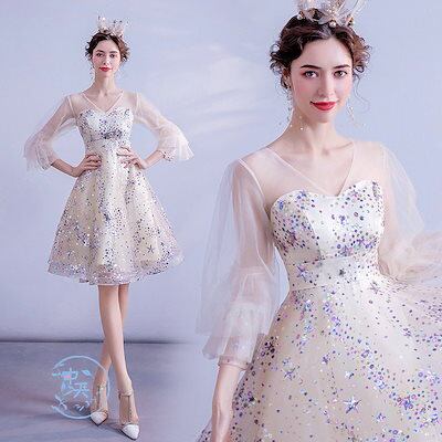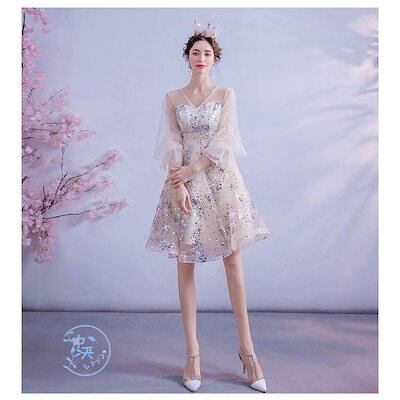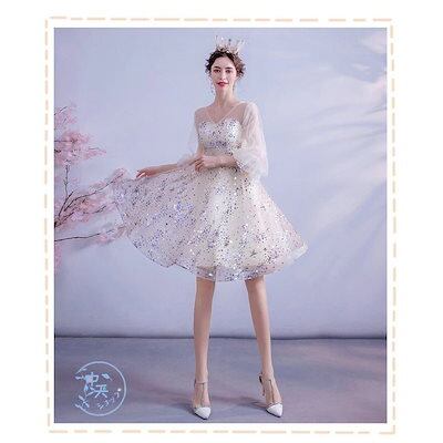 ウェディングドレス パーティードレス 花嫁ドレス プリンセスドレス 膝丈ワンピース レディース Aライン スパンコール 結婚式 パーティー 上品 きれいめ 大人