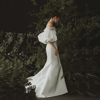 ウエディングドレス 袖あり 結婚式ドレス 白 二次会 安い エンパイア 花嫁 フォトウエディング ビ