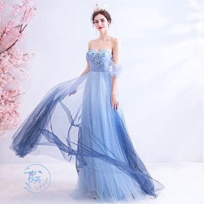 ウェディングドレス パーティードレス 花嫁ドレス マキシワンピース ロングレディース チューブトップドレス Aライン チュール 結婚式 謝恩会 上品 きれいめ