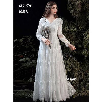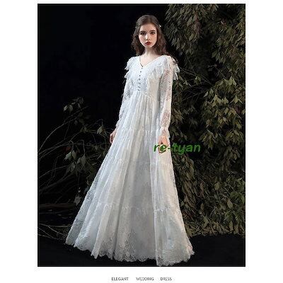 ウエディングドレス レース 二次会 スレンダー2次会 結婚式 花嫁袖ありブライダル エンパイアライン