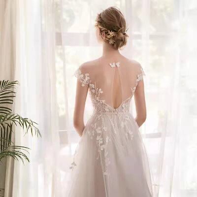 ウエディングドレス aライン 白 袖あり レース 花嫁 結婚式 二次会 パーティードレス ブライダル