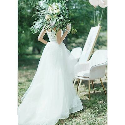 ウエディングドレス 二次会 チュール aライン 花嫁 レディース ロングドレス 前撮り 披露宴 白 ビーチ婚 ブライダル シンプル20代30代 ビーチフォト 可愛い白