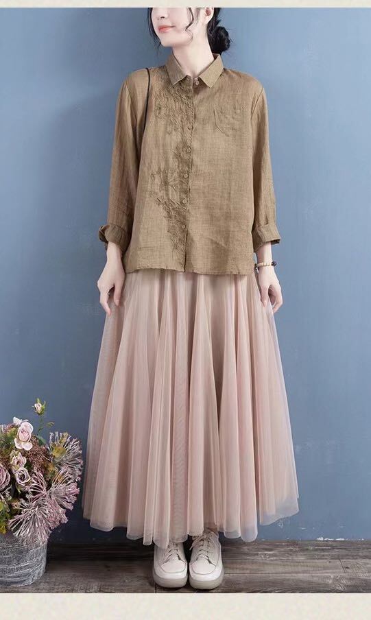 初回送料無料 新作レディースファッション カジュアル ゆったり 刺? 長袖 シャツ トップス