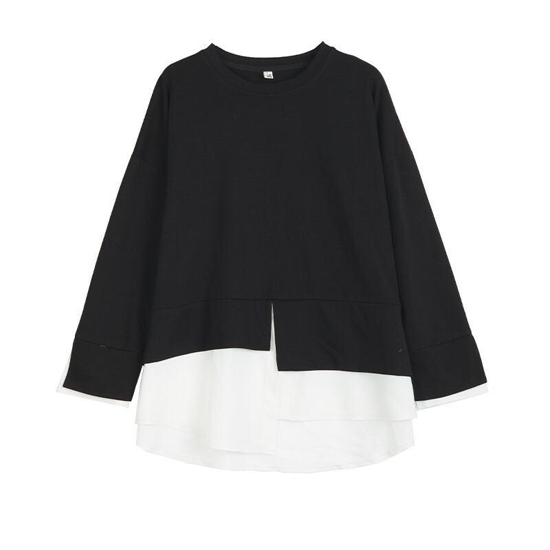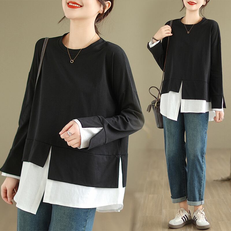 初回送料無料 新作レディースファッション カジュアル ゆったり フェイク 2枚 長袖 トップス