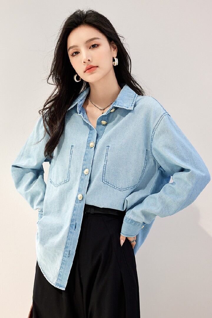 初回送料無料 上着のシャツ レディースファショントップス デニム風トップス ゆったりサイズ上着