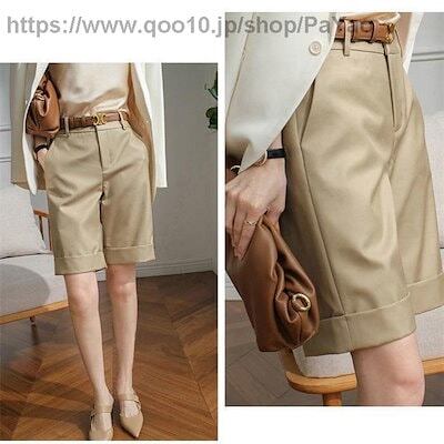 ハーフパンツレディースショートパンツ膝丈5分丈ミディアム丈ボトムスパンツ無地春夏秋冬股上深めすっきりフィットシンプル上品きれいめ