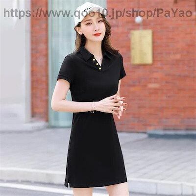 レディース半袖ワンピースポロワンピースゴルフワンピーススウェットタイトワンピース大きいサイズオシャレ大人細身スリム3040