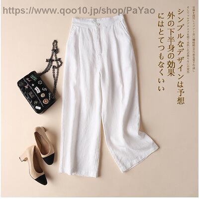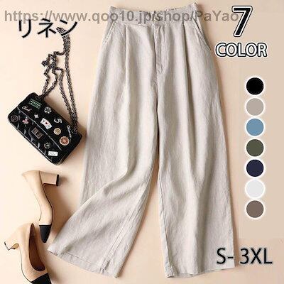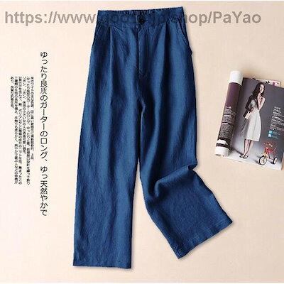 リネンパンツガウチョワイドパンツレディースボトムス 九分丈ハイウェスト女性用夏物ゆったりリネン薄春夏無地