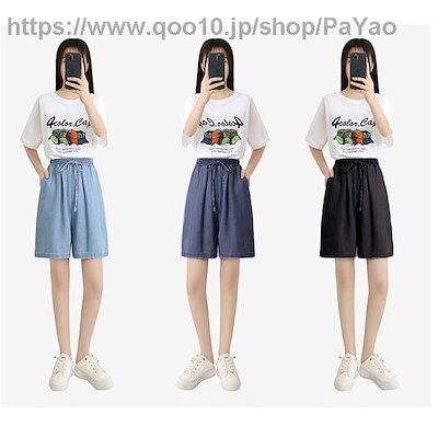 ショートパンツハーフパンツレディースデニム夏 ゆったり無地カジュアルお出かけ女子着痩せ膝上お洒落シンプル