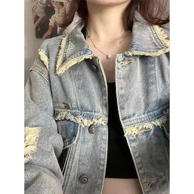 ins 韓国ファッション デニムジャケットトップスフェミニン開襟ゆったり長袖カジュアルコート