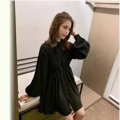 夏新作 半袖 シャツワンピース 韓国ファッション 大きめサイズ 快適 オフィス ブラウスワンピース 薄手 気質着痩せ ワンピース