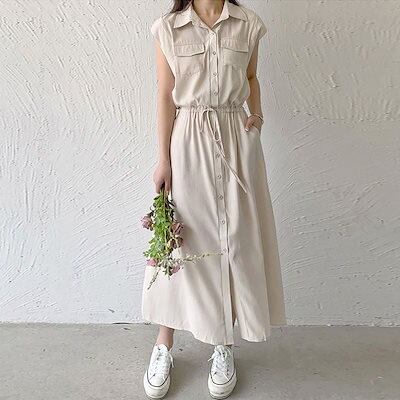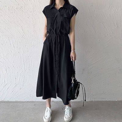 夏新作 半袖 シャツワンピース 気質 ノースリーブ シンプル オフィス ブラウスワンピース ロングワンピース リゾートワンピース 韓国ファッション