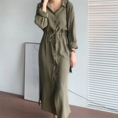 夏新作 長袖 シャツワンピース 無地 柔? 通気性のいい シンプル オフィス ブラウスワンピース ロングワンピース リゾートワンピース 韓国ファッション