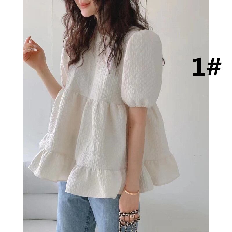 2024年夏新作 ブラウス 半袖シャツ トップス レディース ラウンドネック ハブスリープ 可愛い