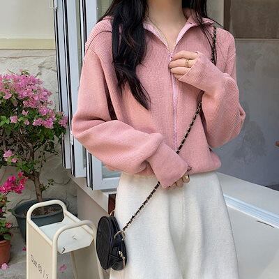 ジップアップニットブルゾン 韓国風 秋冬 ニットカーディガン レディース アウター 秋冬 新作 ミディアム丈 羽織り ゆったり