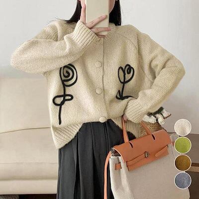 中厚手ニットカーディガン ニットセーター ニットカーディガン レディース アウター 秋冬 新作 ミディアム丈 羽織り ゆったり