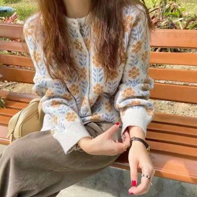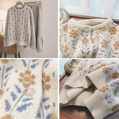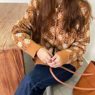 花柄 ジャガードカーディガンレディース ニットカーディガン レディース アウター 秋冬 新作 ミディアム丈 羽織り ゆったり