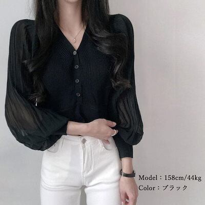 ニットカーディガンボリューム袖Vネック ニットカーディガン レディース アウター 秋冬 新作 ミディアム丈 羽織り ゆったり