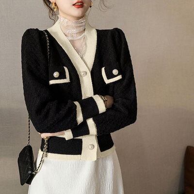 ニットカーディガン 配色 レディース ニットカーディガン レディース アウター 秋冬 新作 ミディアム丈 羽織り ゆったり