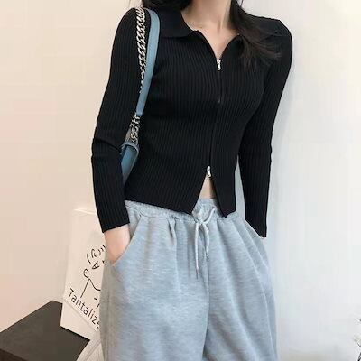 リブニットトップスレディースジップアップ ニットカーディガン レディース アウター 秋冬 新作 ミディアム丈 羽織り ゆったり