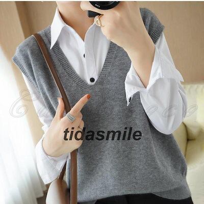 ニットベスト レディース ベストセーター 無地 Vネック ノースリーブ トップス カジュアル コーデ 暖かい ゆったり シンプル 春秋冬 おしゃれ