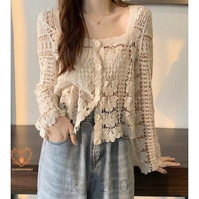 カーディガン レディース ボレロ レース サマージャケット 彫り メッシュ 透けし 夏 春 秋 カーディ