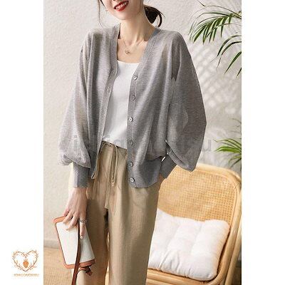 ニットカーディガン レディース 春夏 薄手 uvカット vネック 長袖 ニットガウン 紫外線カット 冷房対策 ガーリー ゆったり 大人 可愛い おしゃれ 20代 30代 40代