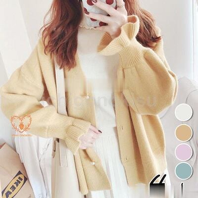 ニットカーディガン レディース 秋冬 長袖ニットトップス コーディガン 無地 vネックカーディガン フレアセーター アウター ゆったり 韓国風 オシャレ 可愛い