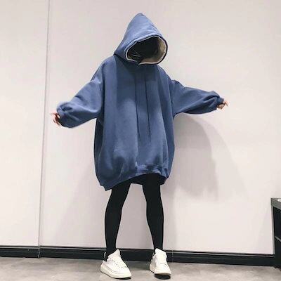 太ったmmだるい2-300斤の超大型サイズ韓国版ゆったり中長期長袖婦人服連帽に綿毛の厚い衛衣潮