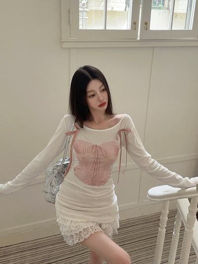 2024秋冬 長袖 Tシャツ ショート丈 長袖 可愛い おしゃれ レディース 韓国 フィット ラウンドカラー 重ね着丈 スリーブ 女っぽ Tファッション系 フェミニン きれいめ 色っぽ プリント