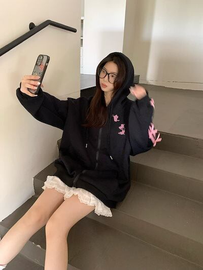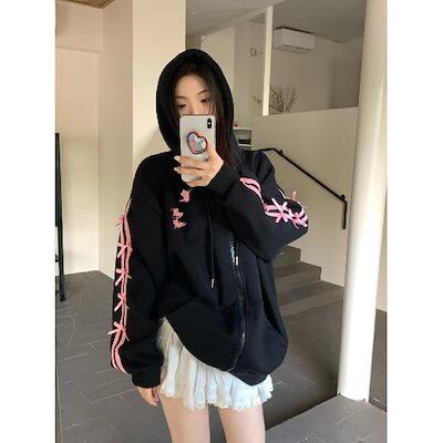 2024 秋冬 かわいい レディース フード付きアウターフーディーロゴブルゾン長袖シルエット羽織りトップスサイド冬カジュアルファッション系サイズお出かけフル丈トラック