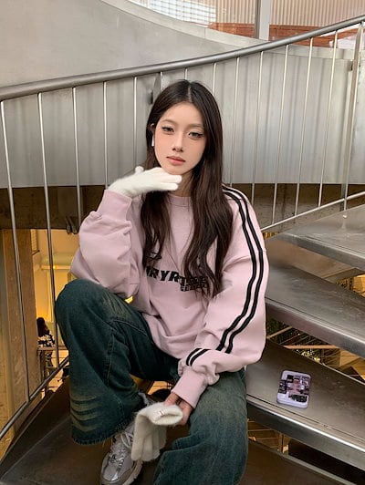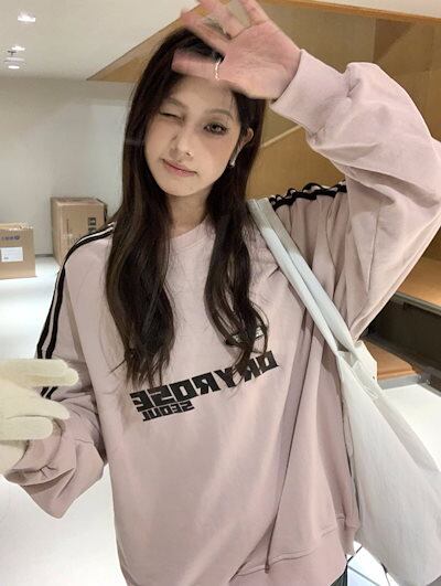 2024 秋冬 トレンド2type 裹起毛トップスバイカラー長袖 かわいいK-POPTロング黑レディース韓国風ロゴ衣装ルーズゆったりカジュアルおしゃれサイズスリーブシルエットファッション系サイド春