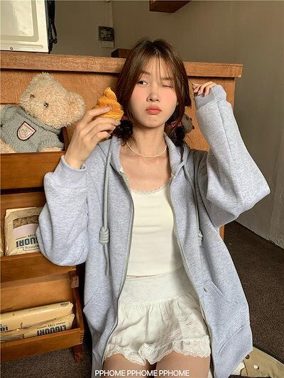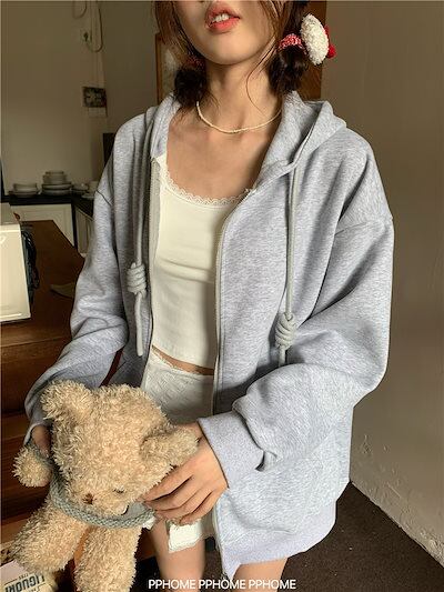 6色 今年 秋冬 韓国 かわいい レディース フード付きアウターフーディーロゴブルゾン長袖シルエットトップスサイド冬カジュアルファッション系サイズお出かけフル丈トラック高校生 通学大学生