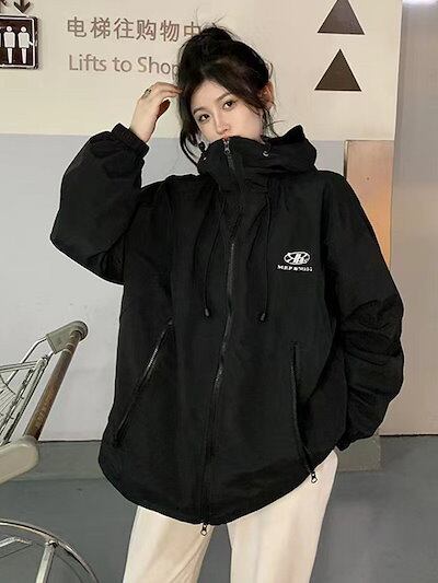 今年 秋冬 選べる2タイプ 厚手 中綿入り かわいい レディース フード付きアウターフーディーロゴブルゾン長袖シルエットトップスサイド冬カジュアルファッション系サイズお出かけフル丈トラック