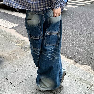2024秋冬 韓国トレンドデニムパンツ ボトムス ジーンズ ファッション系スタイル ゆるダボ ジーンズ シルエット加工ゆったり レディース カジュアル 春夏 メンズライク
