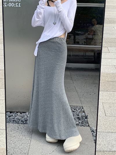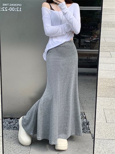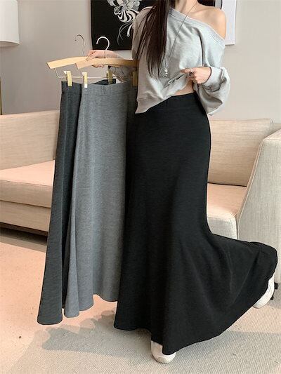 2024 秋冬スカート ロング丈 フィッシュテール ハイウエスト 美脚効果 脚長効果 細見え フレア 秋 黒 おしゃれ かわいい 韓国ファッション レディース お出かけ