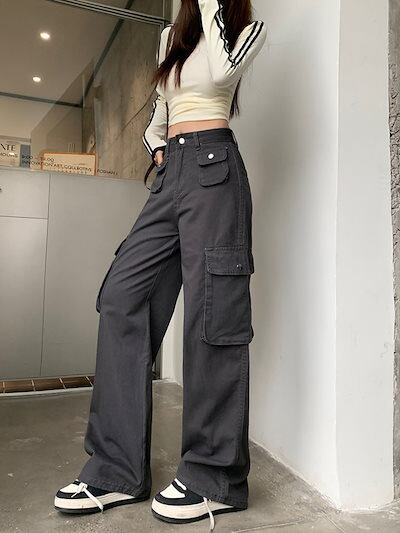 2024秋冬パンツ ロング丈 ワイド ポケット ハイウエスト 美脚効果 脚長効果 細見え 秋 白 おしゃれ かわいい 韓国ファッション レディース お出かけ