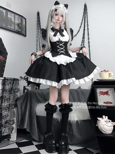 今年 短?期 4点 セットアップ ワンピース ハロウィン 大人 仮装 コスチューム服 衣装 学園祭 文化祭 ファッション系 レディース セクシー型 ブラック かわいい