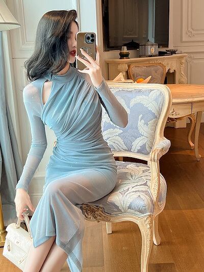 キャミワンピースワンピース ドレス パーティードレス ロングワンピース 韓国 ワンピース ウエスト引き締め セクシー 透かし彫りメッシュ 披露宴 結婚式 演奏会 ウェディング 二次会 発表会