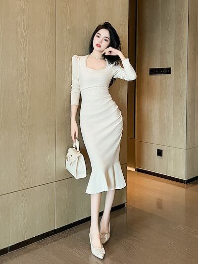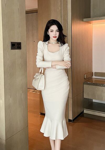 キャミワンピースワンピース ドレス パーティードレス 真珠 ロングワンピース フィッシュテールワンピース スリミング セクシー 披露宴 結婚式 演奏会 ウェディング 二次会 発表会 タイトワンピース